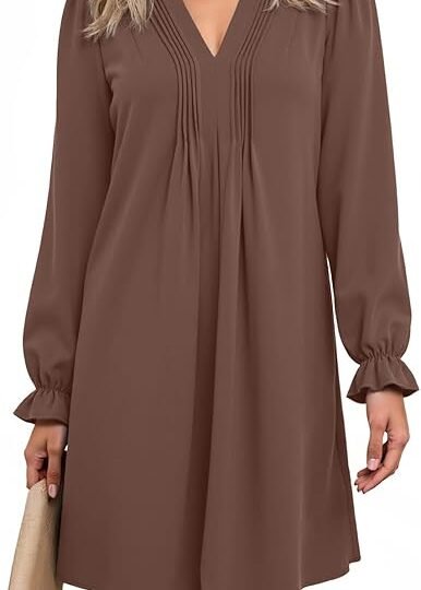 Effortless Style for Every Occasion Step into timeless elegance with the Dokotoo Women’s Casual Dress 2025 — a perfect blend of comfort, femininity, and modern charm. This A-line midi dress features ruffle sleeves, a flattering V-neckline, and soft pleated details, creating a look that’s effortlessly chic and perfect for any season. Flattering Fit & Comfortable…